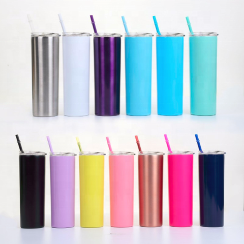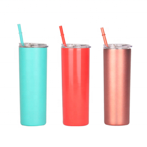 卸売20オンスステンレス鋼スキニーストロータンブラー二重壁断熱スキニーコーヒーマグ蓋付き